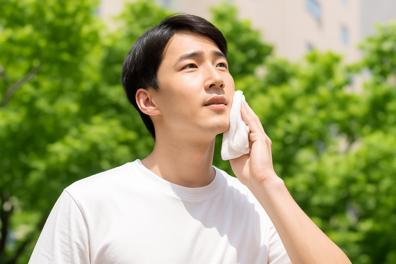 가능한 한 피부를 시원하고 건조하게 유지하는 것이 중요합니다. 땀이 날 때는 부드러운 수건으로 살짝 닦아주고, 외출 시에는 오일 컨트롤 종이나 미스트 토너를 챙겨 다니면 도움이 됩니다. 운동 후 땀이 난 상태로 오랜 시간 방치하지 말고, 가능한 빨리 샤워를 하여 땀과 박테리아가 모공을 막는 것을 방지하세요.